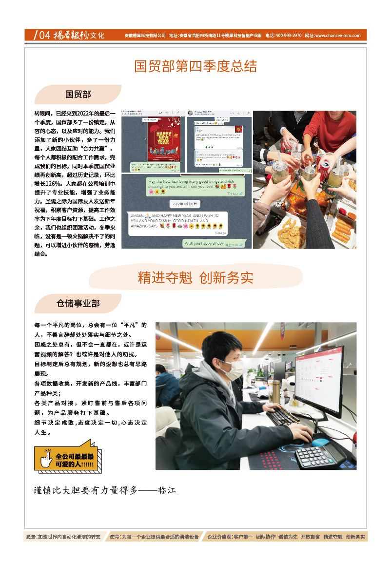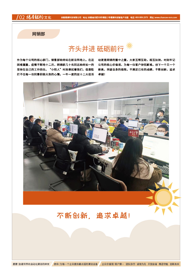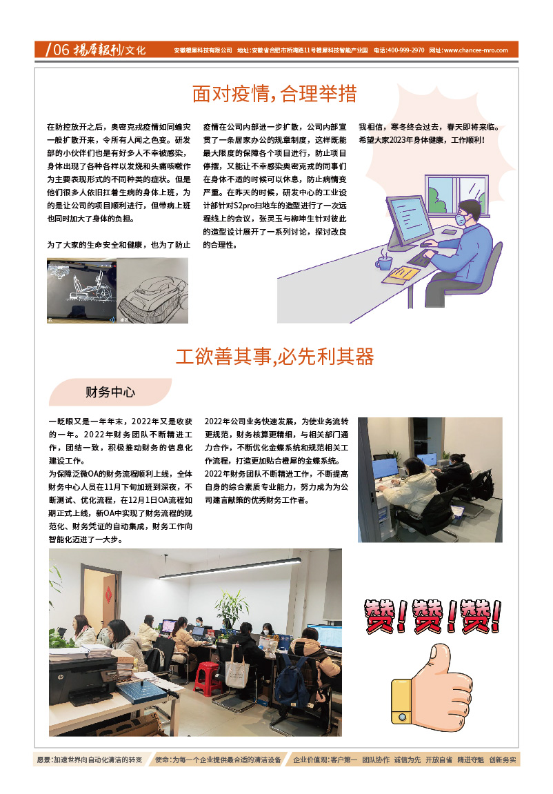 愿景:加速世界向自动化清洁的转变 使命:为每一个企业提供最合适的清洁设备 价值观:客户第一、团队协作、诚信为先、开放自省、精进夺魁、创新务实