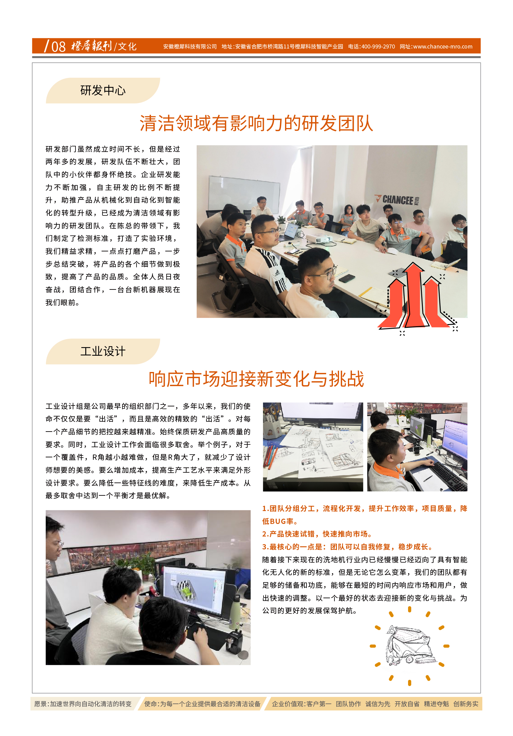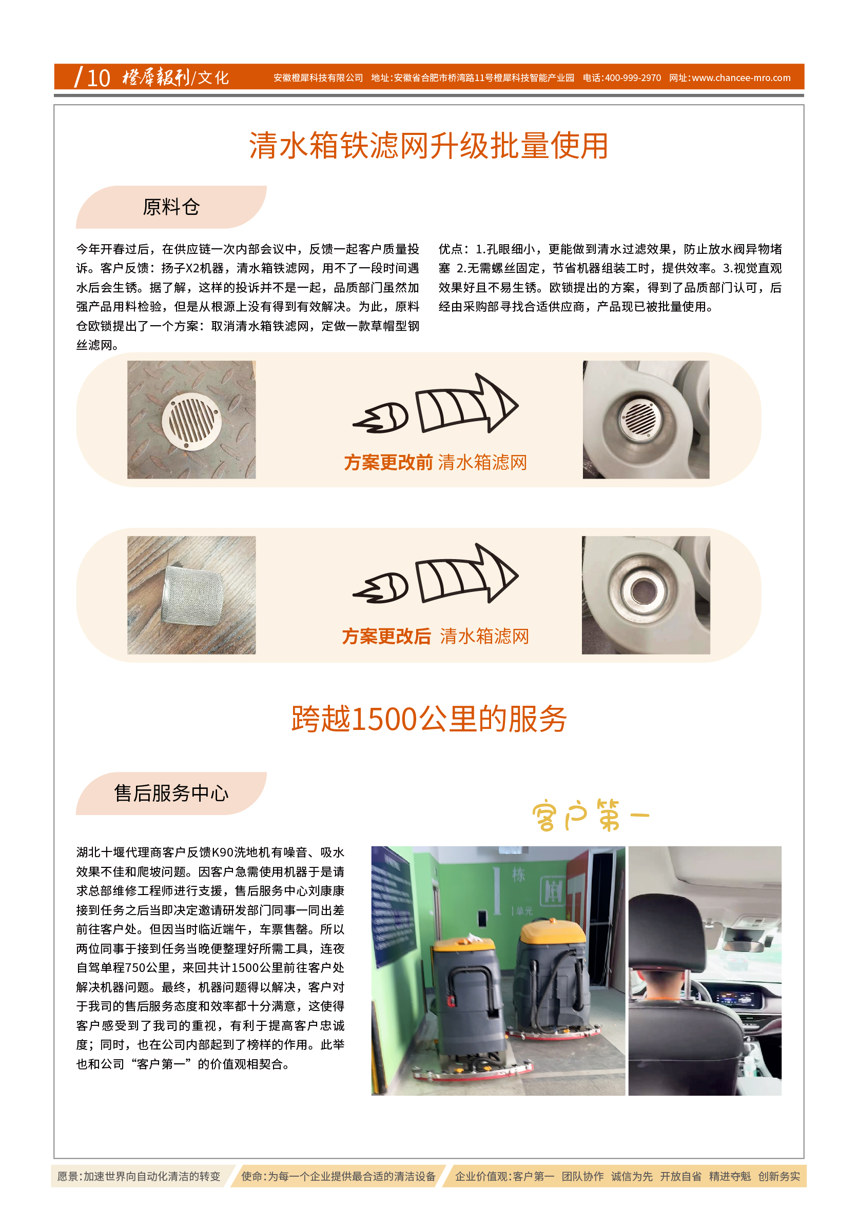 愿景:加速世界向自动化清洁的转变 使命:为每一个企业提供最合适的清洁设备 价值观:客户第一、团队协作、诚信为先、开放自省、精进夺魁、创新务实